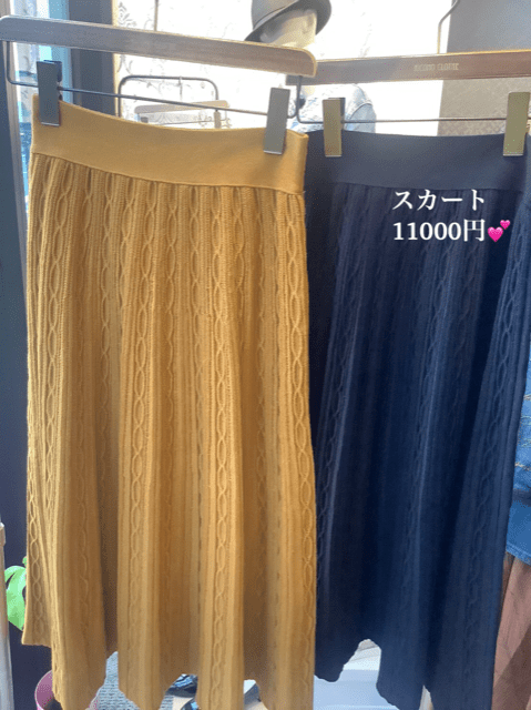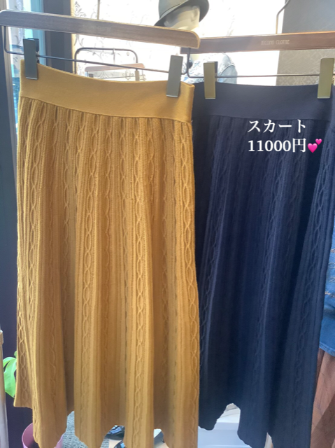 ニットスカート💕 老舗ニットメーカーの自信作💕ウェストスッキリの定番ニットスカートが到着しております 裾に向けて緩やかなフレアーのデザインでスタイルアップしてくれます😍 着丈が長いスカートが多い中で小柄な方にもオススメの1着ですよん 2020年9月12日