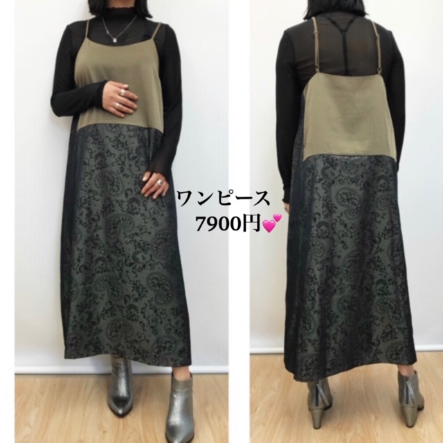 サテン生地とアラベスク柄の配色キャミワンピースが到着しました💕