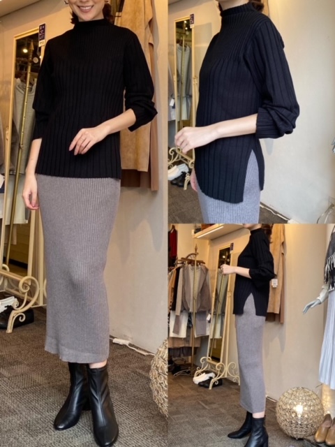 ランダムリブモックネックニット¥6000 💕タイトニットス カート¥7000💕 ランダムリブのモックネックニット🧡 ランダムな幅のリブとサイドに入ったスリットが、ベーシックなアイテムをお洒落に見せてくれますよ🤗✨ ランダムリブモックネックニット¥6000 タイトニットスカート¥7000 2020年9月30日