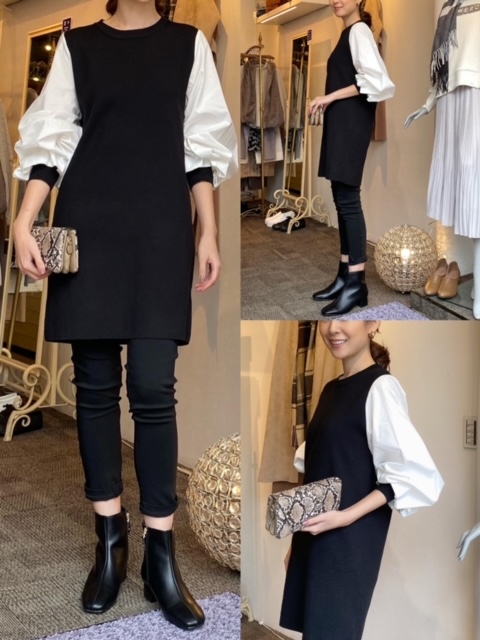 レイヤードトップス¥11000✨パンツ¥4900✨ ベストを重ね着しているようなレイヤードトップス😍 お袖にボリュームがあって、とっても可愛いですよ💕 スキニーパンツやタイツ、ブーツなどとも相性ばっちりです😊❤️ こちらは10月半ばの生産分のご予約を承っております❣️ 気になる方はお早めにご連絡くださいませ✨✨ レイヤードトップス¥11000 パンツ¥4900 2020年9月30日