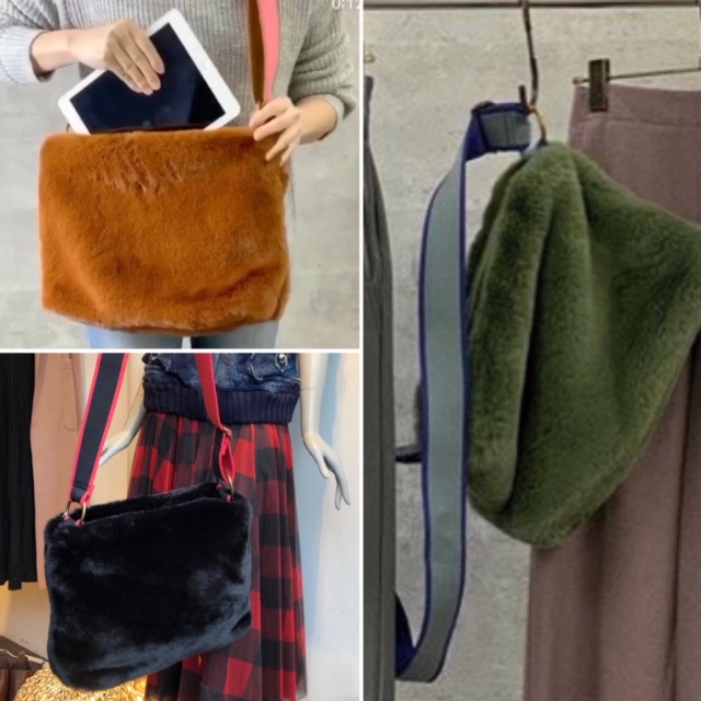 フワフワフェイクファーのショルダーバック💕 とっても肌触りの良いフェイクファーのショルダーバックはいかがでしょうか? 配色の持ち手がカラフルでとってもキュートなバックです😍 A4ファイルやノート型パソコンも入っちゃうからとっても便利💕💕💕 ブラック、ブラウン、カーキの3カラーで入荷しました🙌 ショルダーバック 8900円⭐️⭐️⭐️ 2020年10月6日