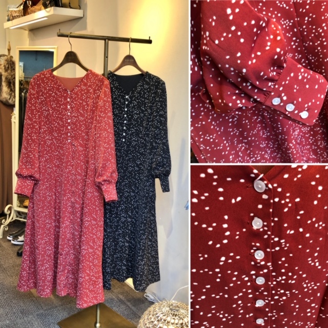 ドットのワンピース💕 秋冬にお洒落なドットのワンピースが入荷しました💕 細かいランダムなドットプリントがとってもステキな1着です バックウェストがゴム仕様となっていて、スラリと見せてくれるのが嬉しい😍 お袖口が、少しフンワリするのもGOOD💕😃 ワンピース 11800円💕 2020年10月12日