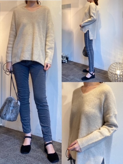 ニット¥22000✨パンツ¥9800✨バッグ¥7900✨ ラクーン100パーセントでとても暖かいニットに、インポートのお洒落なパンツのコーデ💕 ニットは肌触りも良く上質で、お尻が隠れる長さもあるので大変おすすめですよ✨ パンツもとても柔らかく履きやすいので、ぜひお試しにいらしてください🤗 ニット¥22000 パンツ¥9800 バッグ¥7900 2020年10月12日