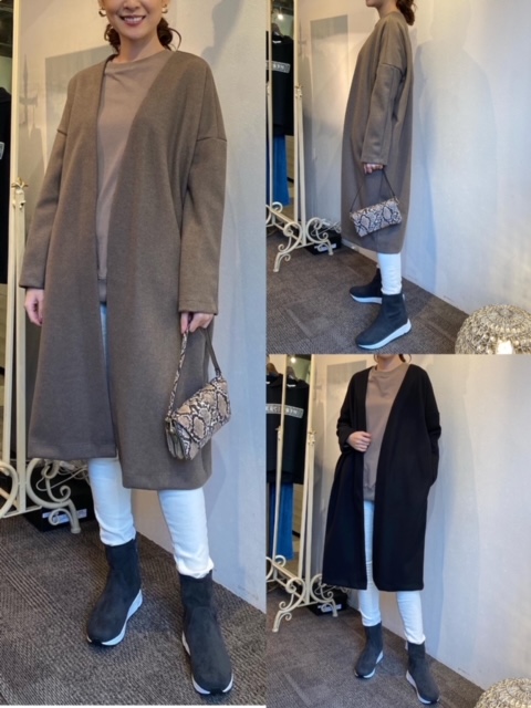 コート¥13900✨ 軽くて着やすいコートのご紹介です💕 シンプルなノーカラーで、どんなコーディネートにも合わせやすくおすすめですよ😊 ❣️ カラーはベージュとブラックがございます✨ コート¥13900 2020年10月15日