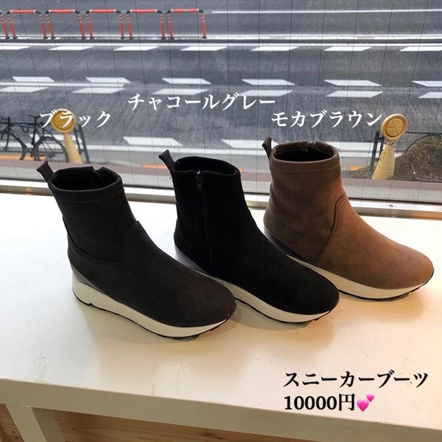 軽量スニーカーブーツ💕10000円 履きやすさとおしゃれ度で大人気のスニーカーブーツが、いよいよメーカー完売となりました。 リコノクローシェでオーダー分が明日また入荷しますので、今季のスポーティーコーデにブーツをお探しの方はぜひ見にいらしてください💕💕💕 36.37.38.39で展開しております。 スニーカーブーツ 10000円💕 外税 2020年10月15日