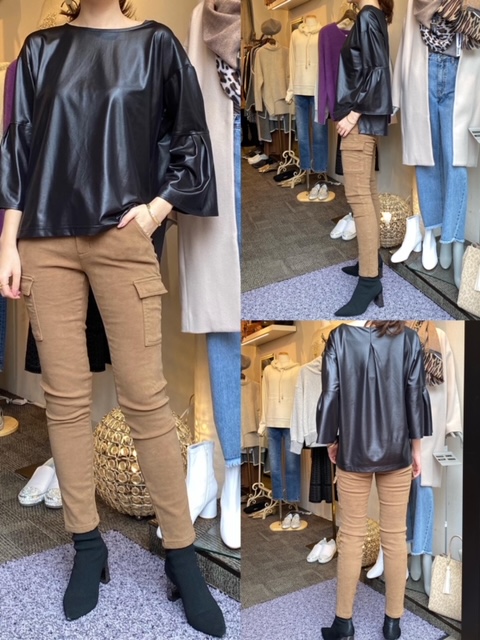 レザーのような光沢のあるトップスはいかがでしょうか✨✨