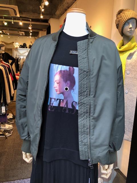 中綿ブルゾン 16000円💕 MA-1タイプの中綿ブルゾンをワンピースやスカートに合わせて、甘辛ミックスのコーデはいかがでしょうか? グレーがかったナイロン素材は、カジュアル過ぎず、クールな着こなしを実現‼️ 中綿なので、春先まで大活躍しそう 2020年11月9日
