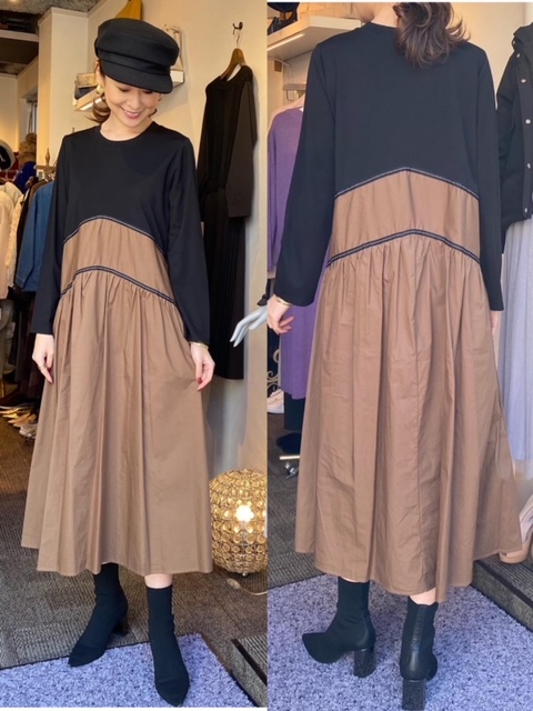ワンピース¥13000💕 ブラックとベージュの配色がお洒落なワンピース🤎 チュニックとしてパンツやレギンスに合わせるのもおすすめです🤗💕 こちら人気商品につき、気になる方はお早めにお問い合わせください❣️ ワンピース¥13000 2020年11月13日