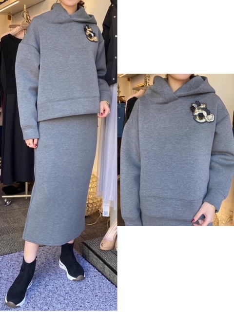 フーディー¥7900✨スカート¥6900✨ おしゃれでスタイリッシュなパーカーと、同素材のスカートをセットアップで💕💕 地厚な素材感なのでだらしなく見えず、とてもおしゃれに着ていただけます✨ ぜひセットアップでご着用いただきたいです🤗💕 フーディー¥7900 スカート¥6900 2020年11月13日