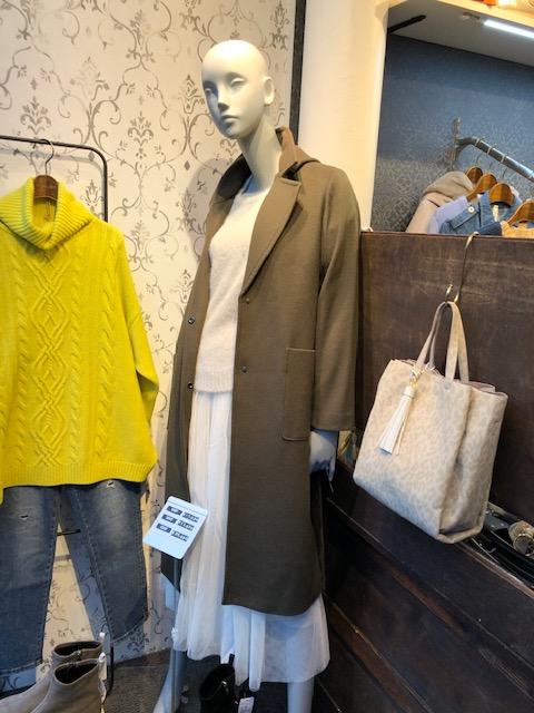 フード付きチェスターコート💕ウール100% 極上の軽さと暖かさを体感できる⭐️お洒落なチェスターコートはいかがでしょうか? フードは取り外しができますので、きちんと感も演出できます😍 こなれ感があるカーキを取り入れて、冬のスタイリング楽しんでみませんかーー? ニット 17000円 ファックス100% スカート 13600円 コート 39000円 バック 6300円 2020年11月13日