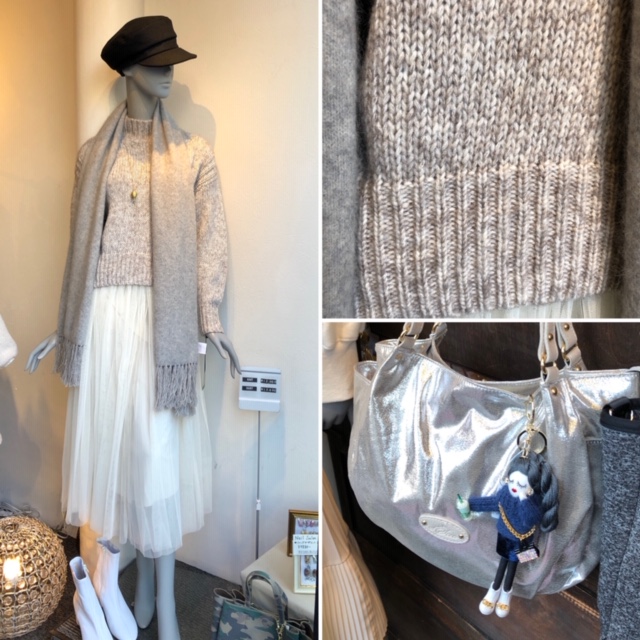 ホワイト❎グレージュ 冬の白コーデはもはや定番となりつつありますねーーー ピュアホワイトのチュールスカートをミックス調ニットでカジュアルダウン💕 ライトグレーのフワフワストールと黒のキャスケットでアクセントをつけたコーデです⭐️ 白のスカートはぜひ一枚あると便利です 可愛いニットは盛り沢山ですので、20日の金曜日からまたぜひ見にいらしてくださいませー ニット 12000円 スカート 13600円 キャスケット 4900円 パック 5500円 2020年11月18日