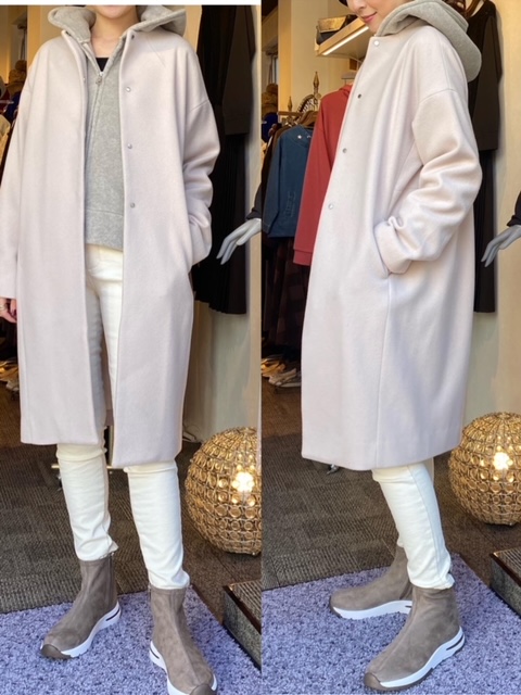コート¥33000✨✨ ウール100%の軽くて暖かいコート❄️✨ 首元はノーカラーですっきりしており、インナーはタートルやフードを合わせてもお洒落です😊 冬の白は素敵ですよー💕💕💕 コート¥33000 2020年11月18日