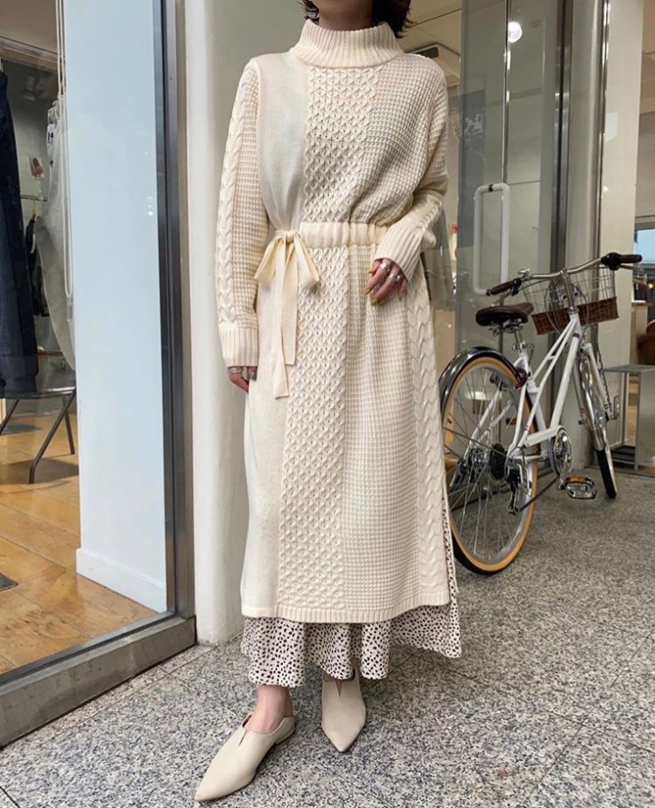 白のニットワンピース 13000円💕 さっくりと編まれたケーブルがおしゃれなニットワンピースが到着しております💕 アイボリー、ライトベージュ、ブラックの3カラー チカチカしない肌触りの良いニットです サイドスリットが入っていて、パンツやスカートを合わせて今年らしい着こなしを楽しんで😍 ベージュはラスト一枚です💕 ワンピース 13000円 2020年11月18日