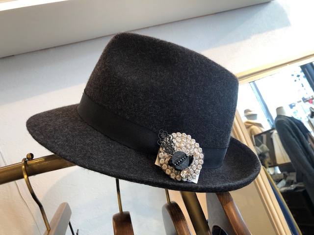 ハット 5900円💕 チャコールグレーのハットが入荷しております💕黒より一段明るいチャコールグレーは合わせやすくて、とても便利なカラーです 帽子初心者の方にもお薦めのお帽子です💕 おサイズはフリーサイズで、中に調節機能がございます😃 ハット 5900円 ブローチ 5400円 2020年11月18日