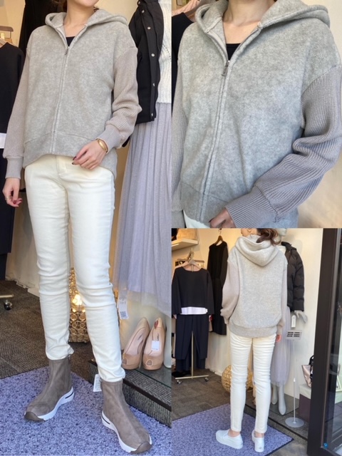 パーカー¥17800💕パンツ¥12800💕 ニットとフリース地の切り替えパーカーはいかがでしょうか💕💕 デザインのあるお洒落なパーカーは、ボトムスを選ばないのでとても重宝しますよ🤗✨ パーカー¥17800 パンツ¥12800 2020年11月20日