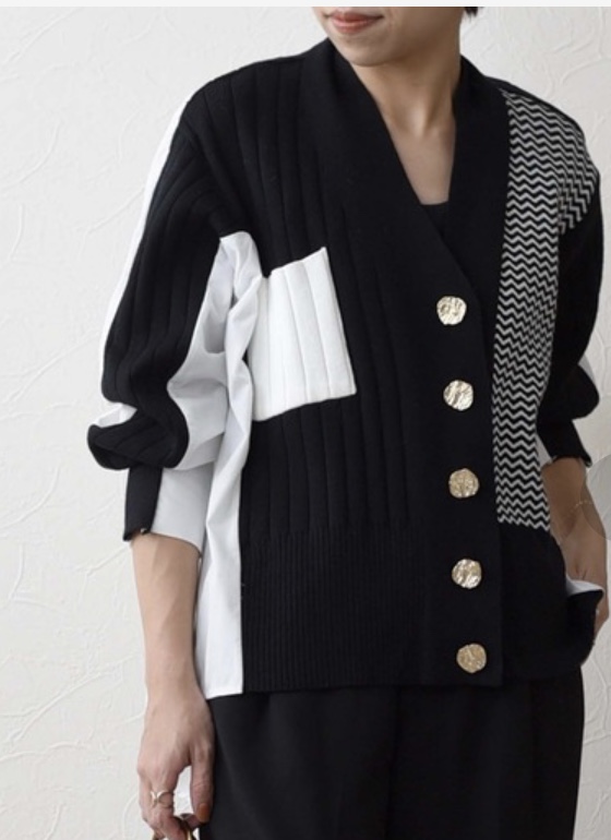 デザインニットカーディガン 6900円💕 前後切り替えの配色デザインカーディガンが再入荷しました💕 フロントは、ニットの切り替えで、バックは白シャツ生地となった大変お洒落なニットカーディガンです💕💕💕 とっても凝った作りで、かなりのプチプラ🎉🎉🎉 いつも一瞬で売り切れてしまいますので、気になる方はお早めにご連絡くださいませね 配色ニットカーディガン 6900円💕 フリーサイズ 2020年11月20日