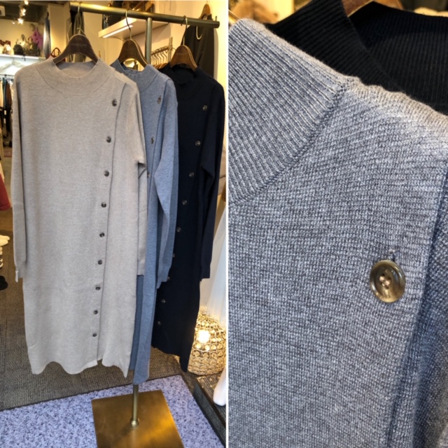 フロントボタンニットワンピース 7900円💕 縦に並んだボタンとストンとしたシルエットが素敵な着痩せニットワンピース がとってもお買い得プライスで入荷しました💕 ボタンを外して、スカートやパンツをチラリと見せれば今年らしいスタイリングが楽しめます💕💕💕 合わせやすいグレー、ベージュ、ブラックの3カラーで入荷しました 素材は非ウール素材なので、チクチクが苦手な方にもお薦めです⭐️⭐️⭐️ ぜひ一枚いかがでしょうか? ニットワンピース 7900円💕 2020年11月24日