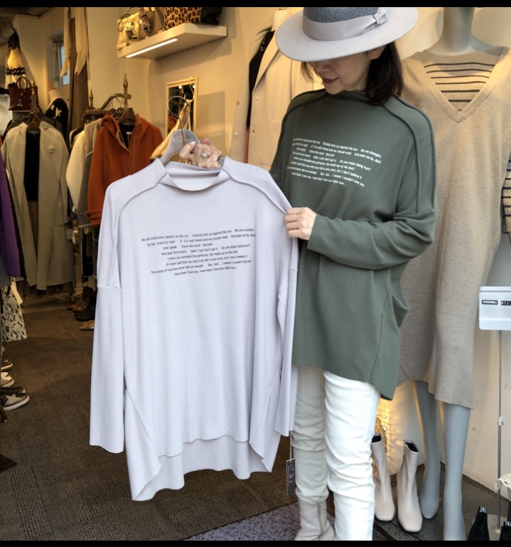デザインロンTシャツ💕 暖か素材のデザインロンTが到着しました💕😃 肩のデザインステッチや少しだけ前後差を付けてヒップが隠れる着丈もGOOD😍 春先まで大活躍間違いなしですよーーー ライトグレーとカーキの2カラーとなっております デザインロンT 9800円💕💕💕 2020年12月2日
