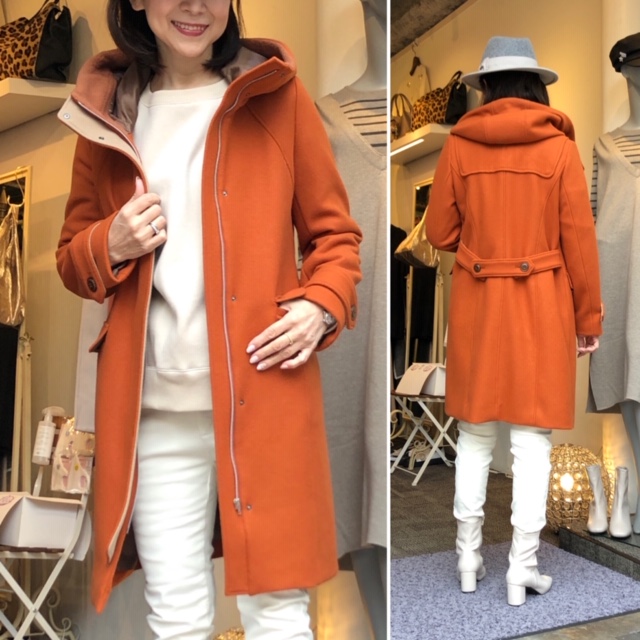 オレンジ🍊カラーのコート💕 冬に爽やかなビタミンカラーのコートはいかがでしょうか? 上質なウール素材で、ふんわりと軽い着心地です⭐️⭐️⭐️ コンパクトなので、小柄な方にオススメのコートです 2020年12月5日