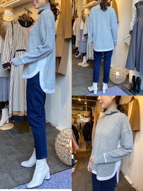ニット¥12800✨デニム¥14800✨ 前後差のある丈感のデザインニット。 お尻がすっぽり隠れる長さがあるので、細いパンツとも相性です🙆🏼♀️✨ ニット¥12800 デニム¥14800 2020年12月11日