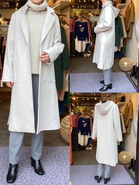 コート¥39000✨ ウール100%のとっても暖かいコートが入荷しています🎄 フードコートはカジュアルにもきれいにも着ていただけて、コーデの幅が広がりますよ✨ 今ならコート20%オフなど大変お得なクリスマスセール開催中ですので、皆様ぜひお店へいらして下さいませ🎄💕 コート¥39000 2020年12月14日