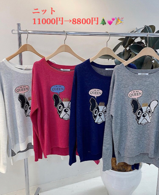 フレンチブルのモチーフニット💕 とーっても可愛いフレンチブルの可愛いニットはいかがでしょう? スッキリとしたシルエットで、ヒップが隠れる位の、少し長めの着丈です💕 アウターを着た時の、フロントのポイントになるとってもお洒落なニットです お色違いはネイビーとホワイトがございます ただ今先行のXmas SALEで20%オフ🎉🎉🎉です お見逃しなく🙌 フレンチブルニット 11000円→8800円💕🎁 2020年12月14日