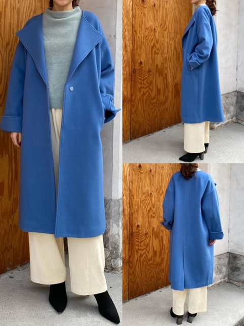 コート¥37000💙 綺麗なブルーが目を引くコート💙 ウール100%で暖かく、とても軽くて着やすいです✨ 大きめの襟で小顔効果も❣️ 今ならクリスマスセール開催中ですので、表示価格よりお安くなります🎄 皆さまぜひお気に入りの一着を探しにいらしてくださいませ❤️😊 コート¥37000 2020年12月15日