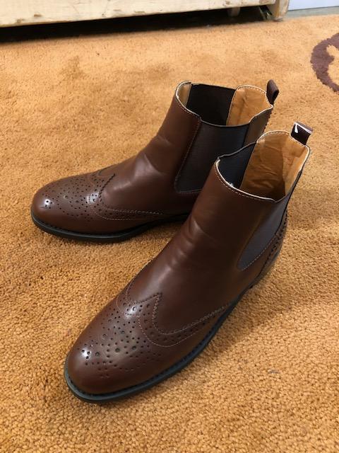ウイングチップのブーツ 11000円💕 こちらは、トゥのデザインがお洒落なウイングチップデザインのブーツになります💕 ソフトな合皮素材で、ヒールも3センチくらいとなっており、長時間履いても疲れにくいブーツです💕 サイドゴアのデザインで、脱いだり履いたりも簡単です⭐️⭐️⭐️ 春先まで大活躍しそうなブーツです 幅広めの木型です 24センチ〜25センチで入荷しております ウイングチップブーツ 11000円💕 2020年12月15日