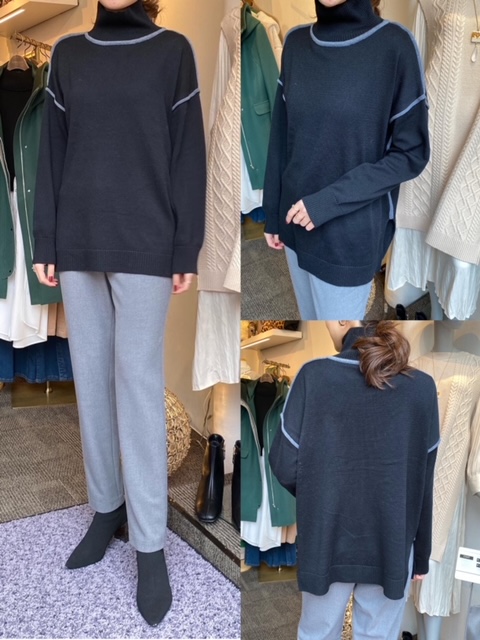 ニット¥5900🌟 トレンドのパイピングニットが入荷しております🌟 ゆったりしたハイネックで首元もきつくなく、絶妙な丈感でパンツにもスカートにも合わせやすいですよ💕 今ならクリスマスセール開催中ですので、表示価格よりお安くなる商品多数です🎄 みなさまぜひこの機会にいらしてくださいませー💕💕 ニット¥5900 2020年12月16日