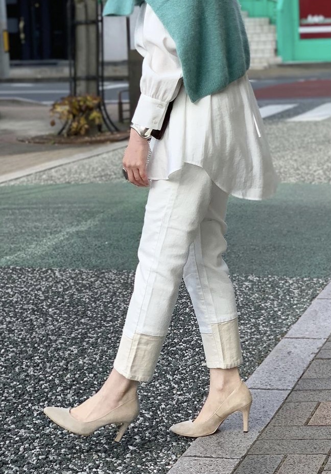 カーキ❎ホワイト❎ピンク 春一番にカーキのパンツはいかがでしょうか? インディマークの定番ストレッチ3Dパンツの新色です💕 ウェストゴムでめちゃ履きやすくて、美脚に見える⭐️⭐️⭐️ ピンクのシューズでアクセントも忘れずにねーーー 暖かくなったら、自由が丘のカフェでパンケーキもおすすめです リコノクローシェ のそばの老舗パンケーキやさん、花キャベツさんのモーニングなら、焼き立てパンケーキとコーヒーや紅茶で何と、495円でした💕🥰 とっても美味しくてお薦めです💕 2021年2月1日