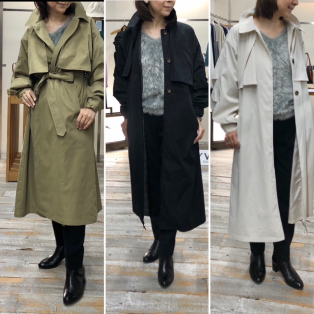 春のトレンチコート💕 ¥11000 定番のトレンチコートも最近はボタンが身立たないタイプがトレンド💕 こちらはしっかりと張りのがあって、襟元もきゅっと立つ感じがお洒落⭐️⭐️⭐️ お袖がふんわりとボリューム袖になっているのも可愛い💕 カーキ、ブラック、ホワイトの3カラーで入荷しております 限定数ですのでお見逃しなく🙌 老舗アパレルメーカーの自信作です💕💕💕 2021年2月16日