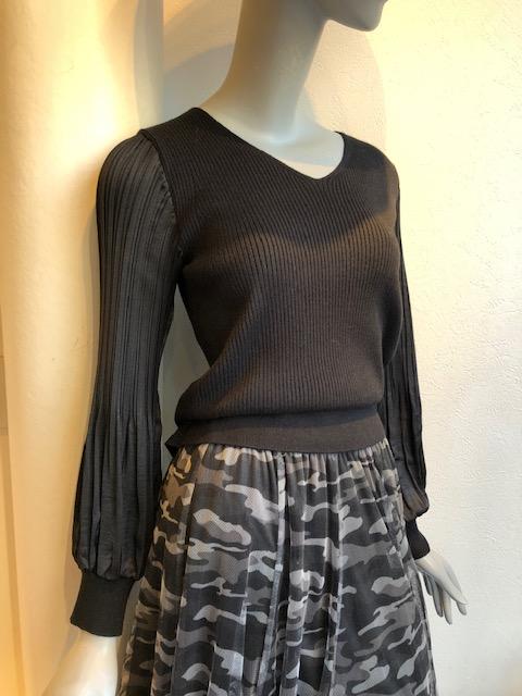 Vネック袖プリーツニット💕 肌触りの良い春ニットと繊細なプリーツをドッキングした、美シルエットのニットトップスはいかがでしょうか? とにかく肌触りが良いので、お肌が敏感な方にも安心です💕💕💕 こちらのブラックの他に、ライトベージュとミントグリーンがございます 袖プリーツニット ¥8000💕 2021年2月16日