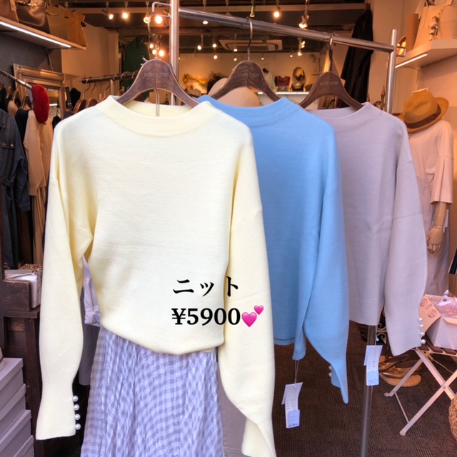 パールボタン付き💕デザインニット ¥5900 ミラノリブ編みの春のニットが到着しました💕 ふんわり暖かくて、春先のコートのインナーとして一枚で着られるお役立ちアイテム💕 暖かいと見せかけてまだまだ寒い春先は、こんなアイテムがお役立ちなのです👌 クリームイエロー、サックスブルー 、ライトベージュ、ブラックの4カラーとなっております 2021年2月16日