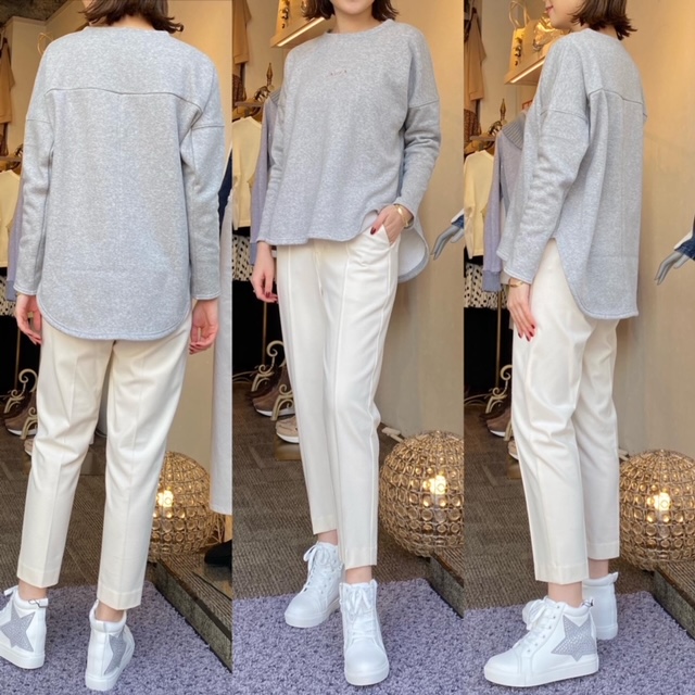 ロゴトップス9800円✨ 裏起毛で暖かいカットソーはいかがでしょうか✨✨ 前後差のある丈感で、気になるお尻も隠してくれますよ😊 ロゴトップス¥9800 パンツ¥13800→¥6900 スニーカー¥9900 コメントは受け付けていません。
