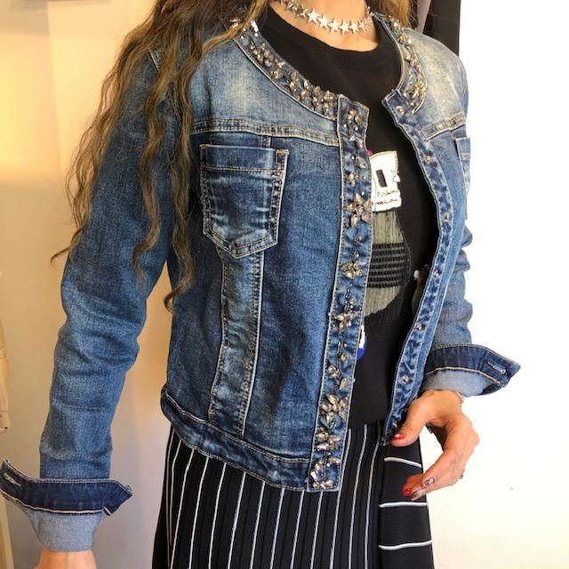 イタリア🇮🇹インポートジャケット💕 毎回大人気のストレッチGジャンが到着しました💕 ウエストがキュッと細く見えて、楽チンな着心地が人気の秘密💕 シックなクリスタルのビジューがとっても華やかなジャケットです S.Mの2サイズになっております 2021年2月19日