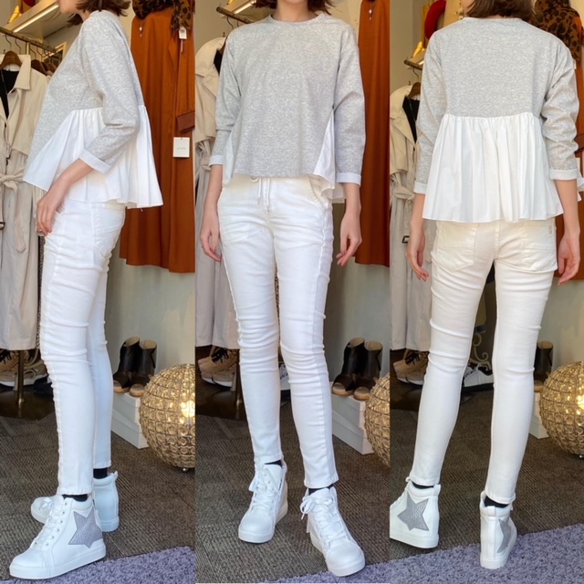 トップス9900円🌸パンツ13,800円🌸 春のおすすめ🌸 異素材ミックスのデザイントップスです☺️ バックプリーツで、後ろ姿もかわいいですよ💕 トップス¥9900 パンツ¥13800 2021年2月20日