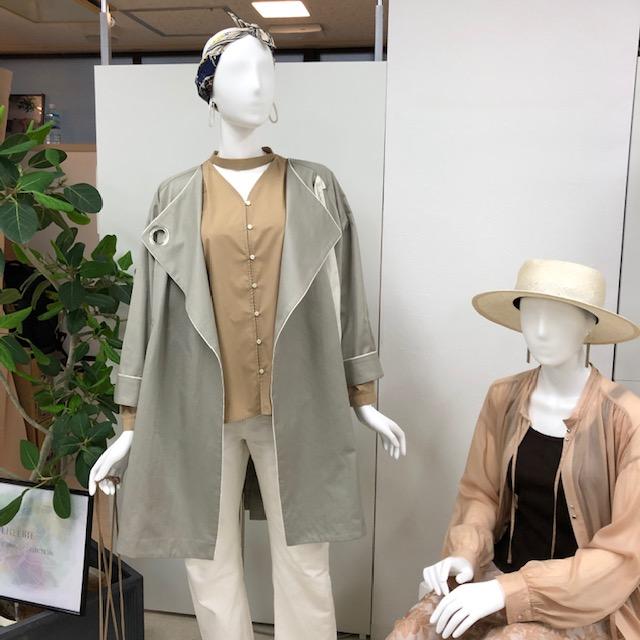 アイレットデザインオーバーコート💕¥12800 綺麗なペールグリーンのスプリングコートが到着しました💕 襟のリングにタイを通して襟元を留めると今年らしいスッキリとしたノーカラーコートのデザインになります🌸 こちらのグリーンの他にネイビーもございます 2021年2月20日