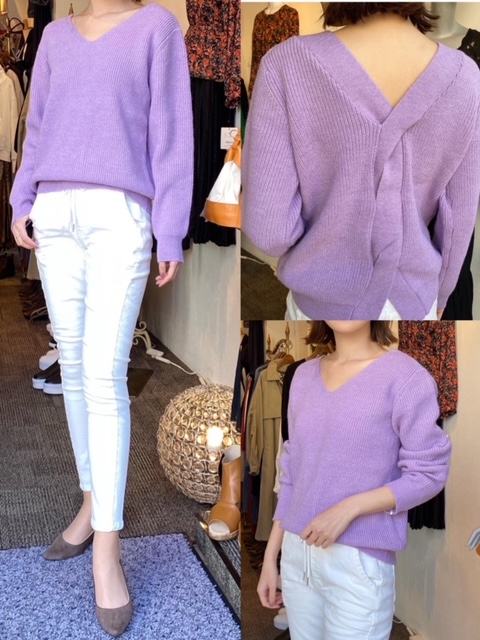 ニット¥8900💕パンツ¥13800💕 ひとつ前のポストでご紹介しましたバックシャンニットのパープルです💕 淡いパープルはお肌を綺麗に見せてくれますよ✨ アクリル65% ナイロン35% ニット¥8900 パンツ¥13800 2021年2月25日