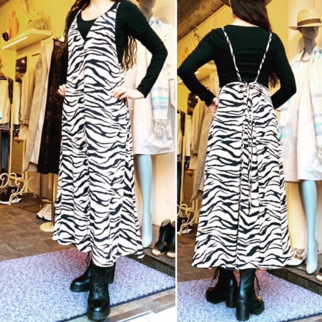 ゼブラプリントキャミドレス💕 エッジの効いたお洒落な好きな方にお勧めの、ゼブラプリントキャミドレスはいかがでしょうか?😊🙌💕 サラサラの生地でシワにならずにオールシーズン着用可能なアイテムです 昨年もこんなタイプは一瞬で完売しましたので、お早めにチェックお願い申し上げます🙌🌸🌸🌸 合わせるのに便利なライダースジャケットは、11800円よりご提案させて頂きます かなりクールな着こなしになりますよぉ〜 ゼブラプリントキャミドレス ¥13800😍 肩紐調節可能で、体型を優しくカバー👍 2021年3月5日