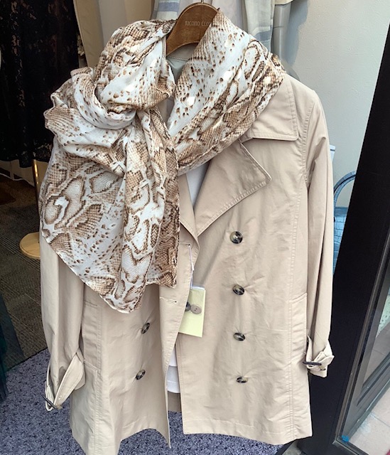 パイソンプリントストール🧣 ¥5800 フランス🇫🇷から到着したパイソンプリントストールとミドル丈トレンチコート💕 ストールは薄手ですがかなり大判なので、ドレスのショールなどにもお使いいただけます パリの方で完売の為、追加が出来ない商品となっております お早めにご注文くださいませ🥰 お色違いは、ライトグレーとなっております ストール ¥5800 トレンチコート ¥9800 トレンチコートはカーキとネイビーもございます💕💕💕 2021年3月5日