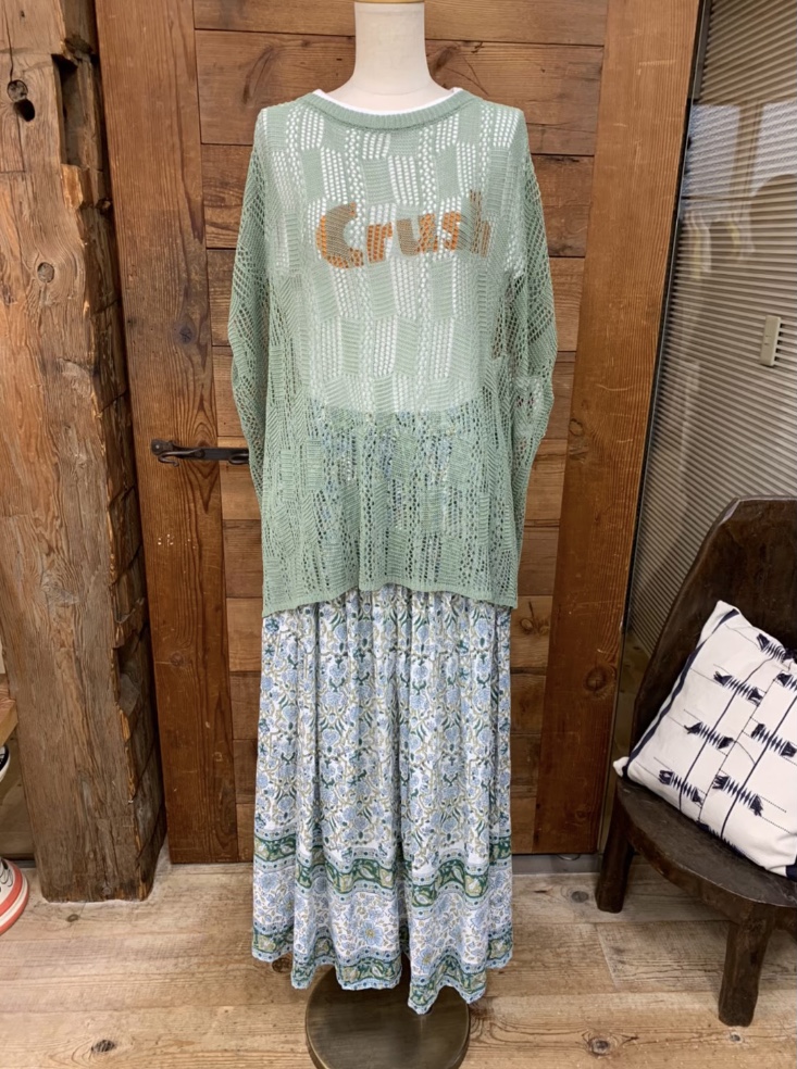 透かし編みプルオーバー ¥6900 今買って秋の立ち上がりまで大活躍しそうなニットのプルオーバー が入荷致しました💕 気温変化の大きな日々ですが、合わせるインナーで、暑い日も寒い日もバッチリ快適に過ごせますようーーー🌸🌸🌸 お写真のグリーンの他に、ベージュとチャコールグレーが到着しております メーカー直販のとってもお買い得なプライスです! 今回限りとなりますので、お見逃しなく🙌 2021年3月13日