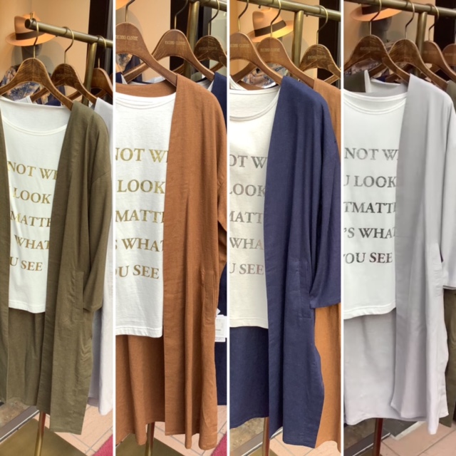 Tシャツ&ロングカーデ ¥9900 こちらは今だけの限定セットの商品です💕 英字プリントの半袖Tシャツとロングカーディガンのセットでお得な¥9900となっております ライトグレー、カーキ、キャメル、ネイビーの4カラーで展開しております 秋の立ち上がりまで大活躍しそう😃💕🙌 2021年3月16日