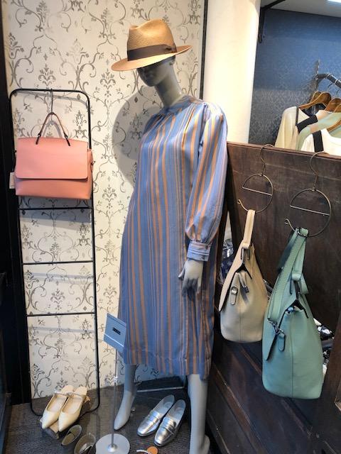 マルチストライプのワンピース💕 お洒落なマルチストライプのワンピースが到着しております💕 こちらのブルー❎キャメルの他に、アイボリー❎ベージュ、ネイビー❎アイボリーの3カラーとなっております シワになりにくく、とろみ感やオチ感が上質なワンピースです ワンピース ¥16000 2021年3月17日