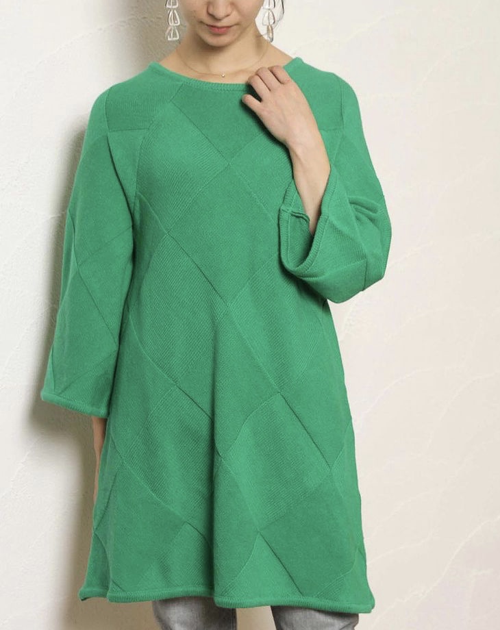 ダイヤ柄チュニックニット💕SALE ビビットなグリーンが素敵なダイヤ柄のチュニックニットを金曜日から10%オフにて販売させて頂きます💕 一枚でサラッとキマるのでとってもお役立ちなニットです ダイヤ柄チュニックニット ¥11000 2021年3月17日