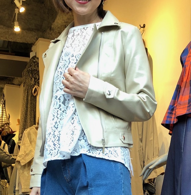 ライダースジャケット💕¥11800 春先は、暖かそうで結構寒い💦💦 なのでやっぱり春のアウターは必需品ですねーーー 合皮素材のジャケットなら風も通さないし、雨に濡れてもへっちゃらだからーーーこんなアウターを一枚いかがでしょうか? メーカーも完売とのことですので気になる方はお早めにチェックしてくださいね 丸首のライダースジャケットもご用意しております🌸😃🙌 レースのブラウス ¥6900 ブラックもございます 2021年3月20日