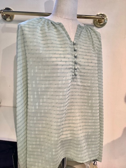 ボーダーシアーブラウス🌸 春らしいミントグリーンのブラウスが到着いたしました💕 ボーダーのシアー生地が今年らしいアイテムです 軽い透け感がお洒落🥰 お色違いはホワイトもございます ボーダーシアーブラウス ¥7900🌸 2021年3月24日