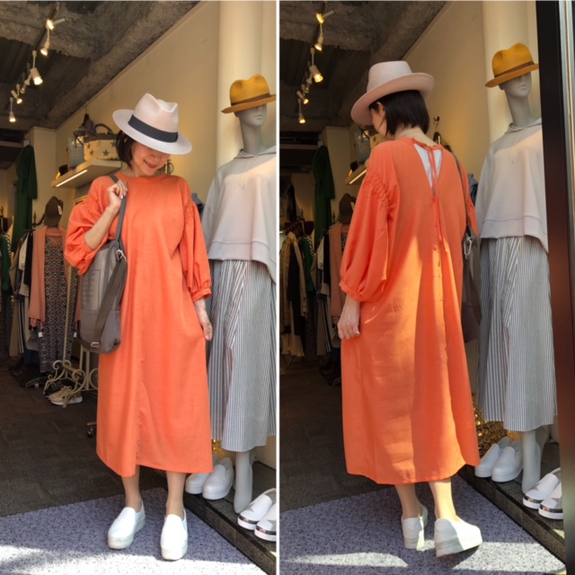 2wayワンピース ¥7900💕 とろみポリエステル素材の前後着用ワンピースが到着しました💕 前開きにもなるので、ガウンとしてもお使い頂ける優れモノ👍 お写真のオレンジの他に、綺麗なグリーンとブラックも入荷しております 厚底スニーカー ¥6900 帽子 🇮🇹 ¥18000 2021年3月26日