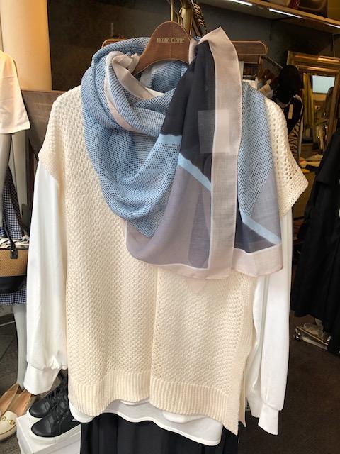 アンサンブルニットとストール💕 袖ボリュームのロンTとメッシュ素材のサマーベストは2枚セットで¥8900円の特価品です👍😃 本日入荷の夏のストールが沢山入荷しました こちらはお得な¥3900です 母の日のプレゼントにもGOOD💕🌸💕 2021年3月26日