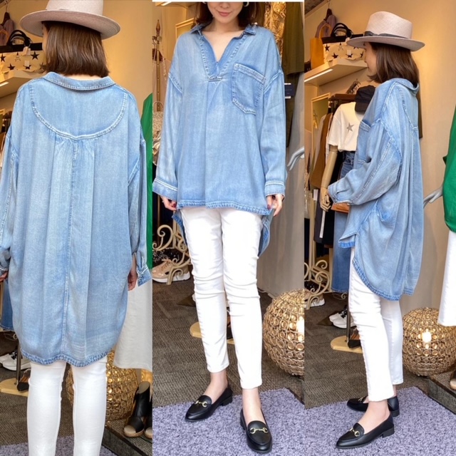 デニムシャツ¥13800💛 流行なくずっと着られるデニムシャツ✨ デニムはどのカラーにも合わせられるので、コーデが決まりやすくとてもおすすめです😊 ゆったりシルエットで体型もカバーしてくれます💛 テンセル100% デニムシャツ¥13800 2021年3月28日