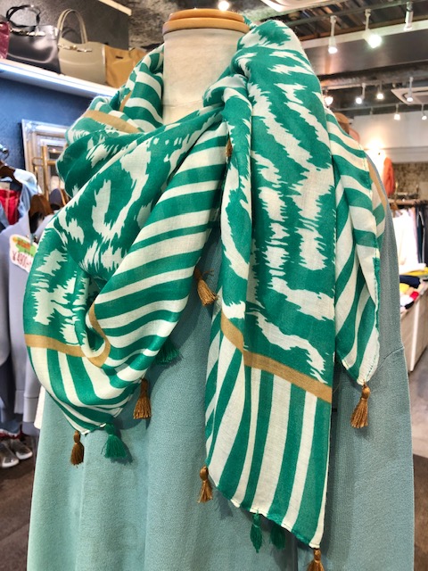 フランス🇫🇷ストール フランスから素敵なストールたちが入荷しました🌸 こちらはグリーンが爽やかなストールです🌸 フリンジのアクセントも可愛い❤️ 素材 レーヨン100% ストール ¥5800 2021年3月28日